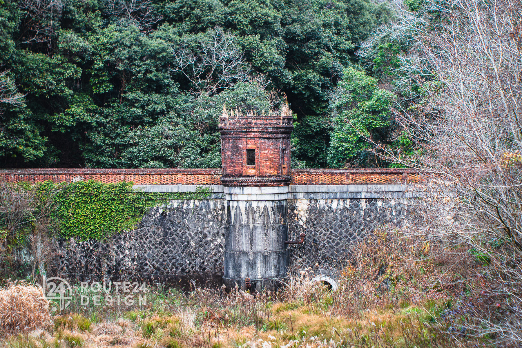 旧桂ヶ谷貯水池堰堤は、大正12(1923)年に建てられた「重力式コンクリート造堰堤」。2016年に国の登録有形文化財に指定されています。